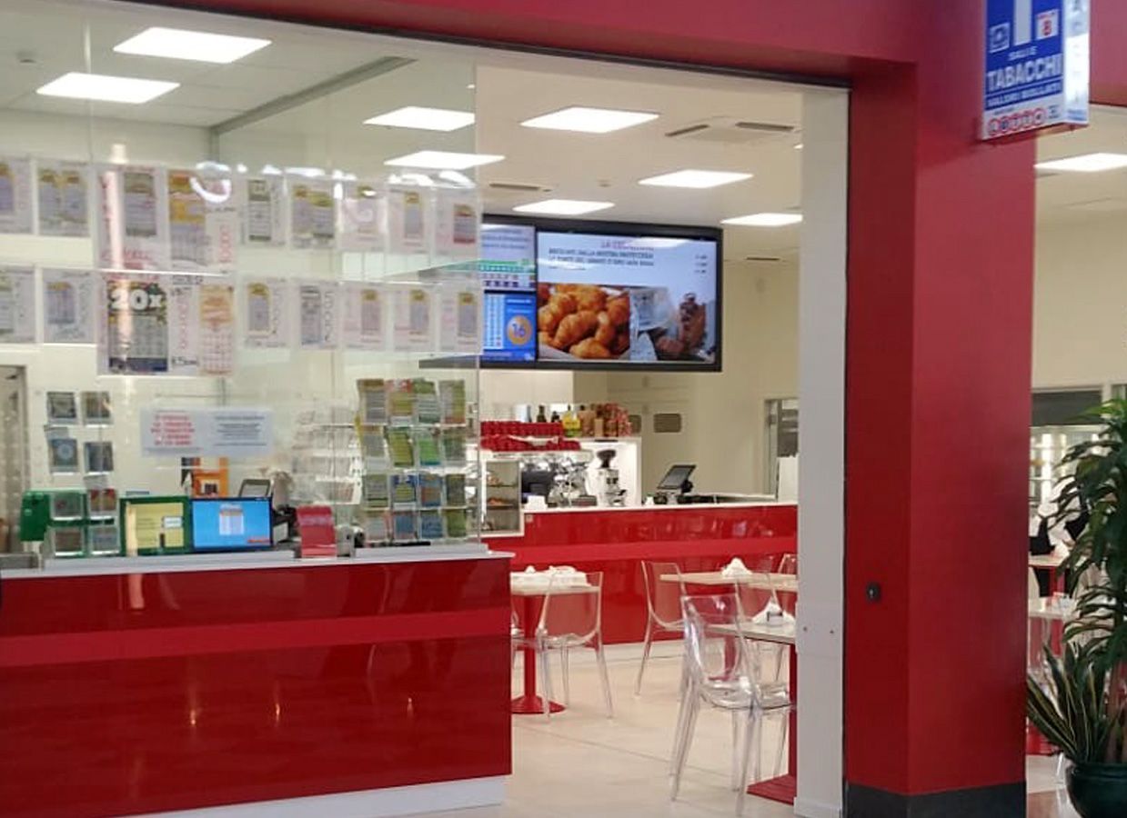 -  Continua a leggere...L’attività commerciale non passa inosservata grazie ai colori rosso Ferrari e il bianco latte scelti in fase di progetto. Il banco bar, interamente realizzato su misura da Ama Arredamenti, è stato progettato creando degli inserti in facciata laccati rosso lucido e bianco. All’interno del banco è presente un’ampia zona di celle refrigerate adibite allo stoccaggio della merce ed è stata creata un isola bifacciale che ne consente la comodità di utilizzo da parte dei gestori. La parte riservata alla zona tabaccheria, che in questo progetto è rilevante, è stata progettata e realizzata tutta su misura in listello di legno rivestito in laminato plastico per soddisfare le richieste della proprietà.