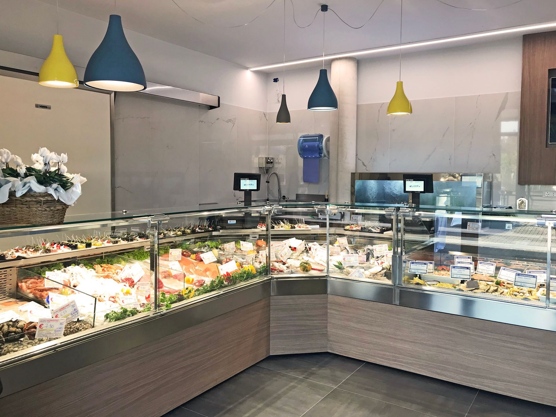 -  Continua a leggere...Ama Arredamenti ha fornito una consulenza mirata alle richieste della proprietà, fornendo un progetto e la realizzazione di un locale dal mood fresco e contemporaneo. L’esposizione dei prodotti è divisa in tre imponenti banchi refrigerati per conservare pesce fresco, gastronomia, e crudité. I colori scelti per questo arredamento sono il bianco e il nero utilizzato nelle giuste proporzioni, in modo che il banco pescheria venga valorizzato come il protagonista principale del progetto.