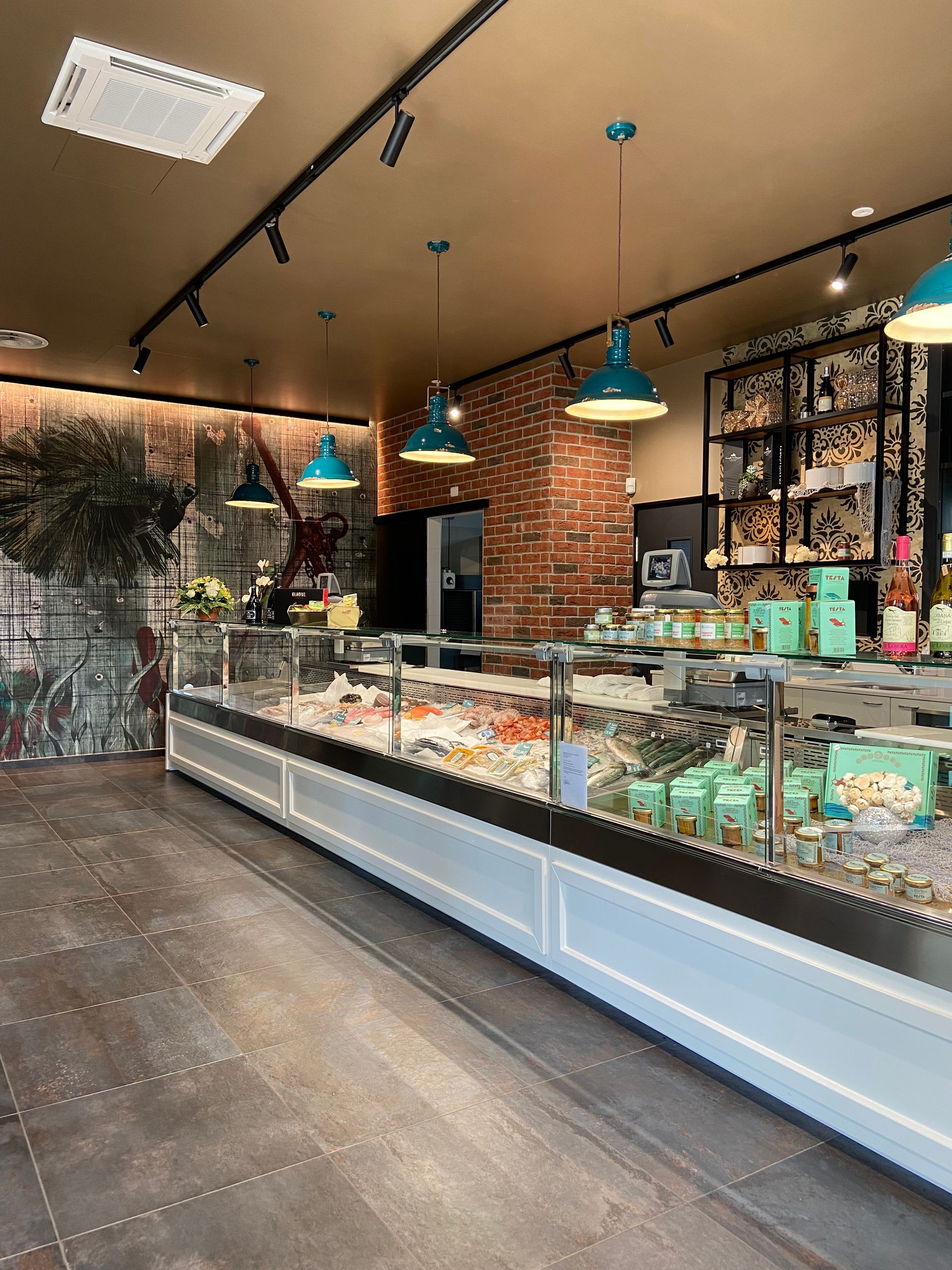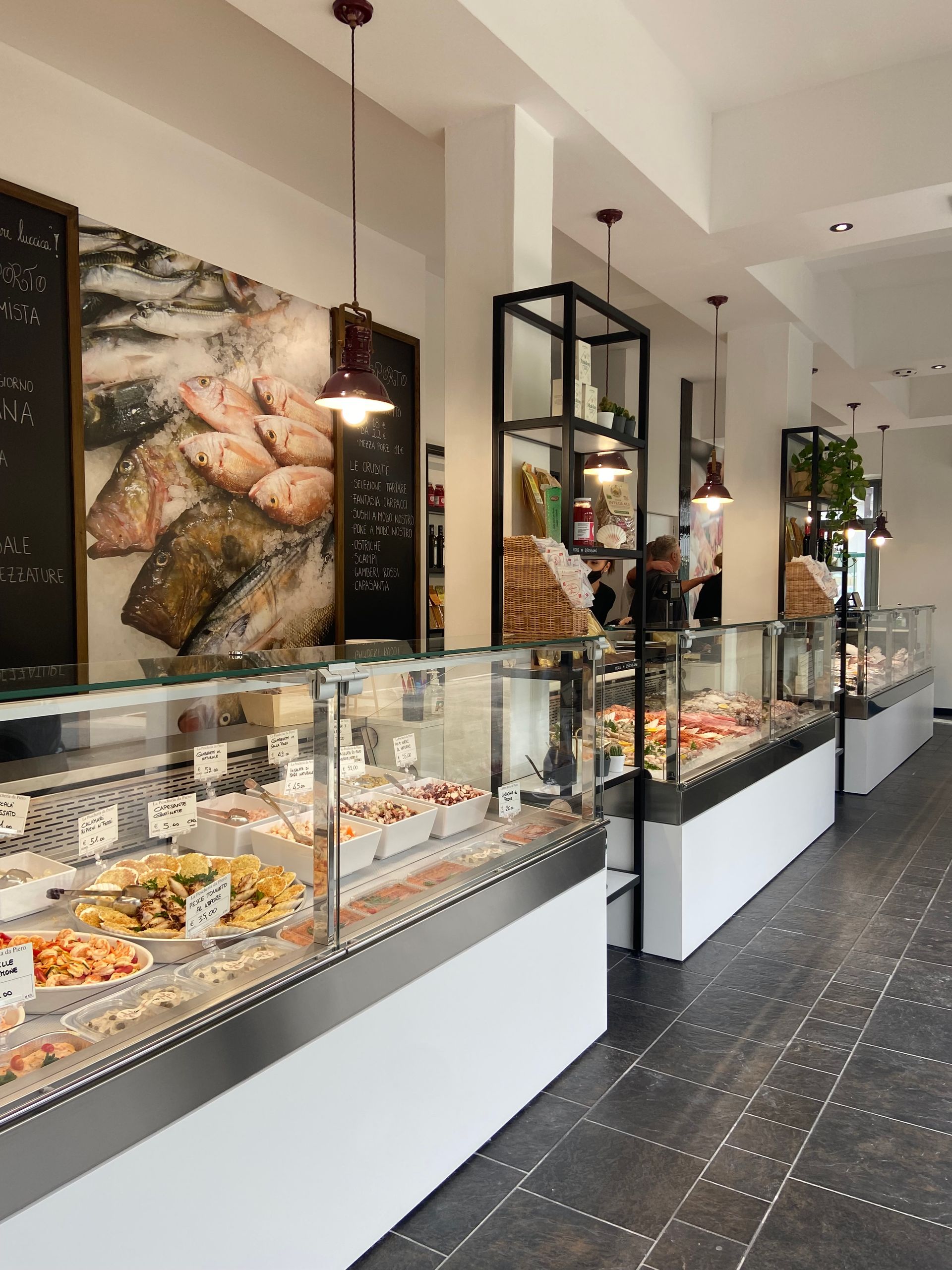 Ama Arredamenti ha fornito una consulenza mirata alle richieste della proprietà, fornendo un progetto e la realizzazione di un locale dal mood fresco e contemporaneo. L’esposizione dei prodotti è divisa in tre imponenti banchi refrigerati per conservare pesce fresco, gastronomia, e crudité.