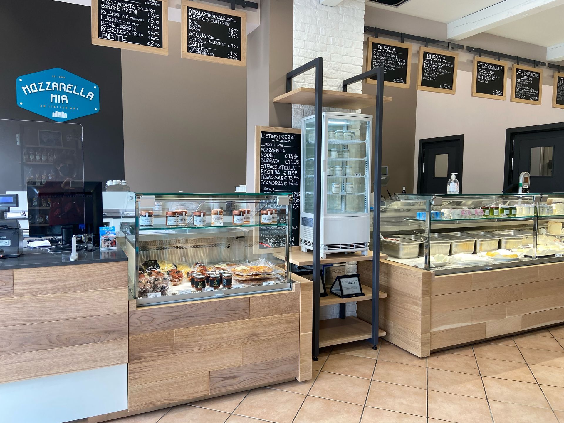 Ama Arredamenti ha realizzato questo ambizioso progetto in stretta collaborazione con i titolari di Mozzarella Mia creando un vero e proprio esempio di attività commerciale a Km. 0.